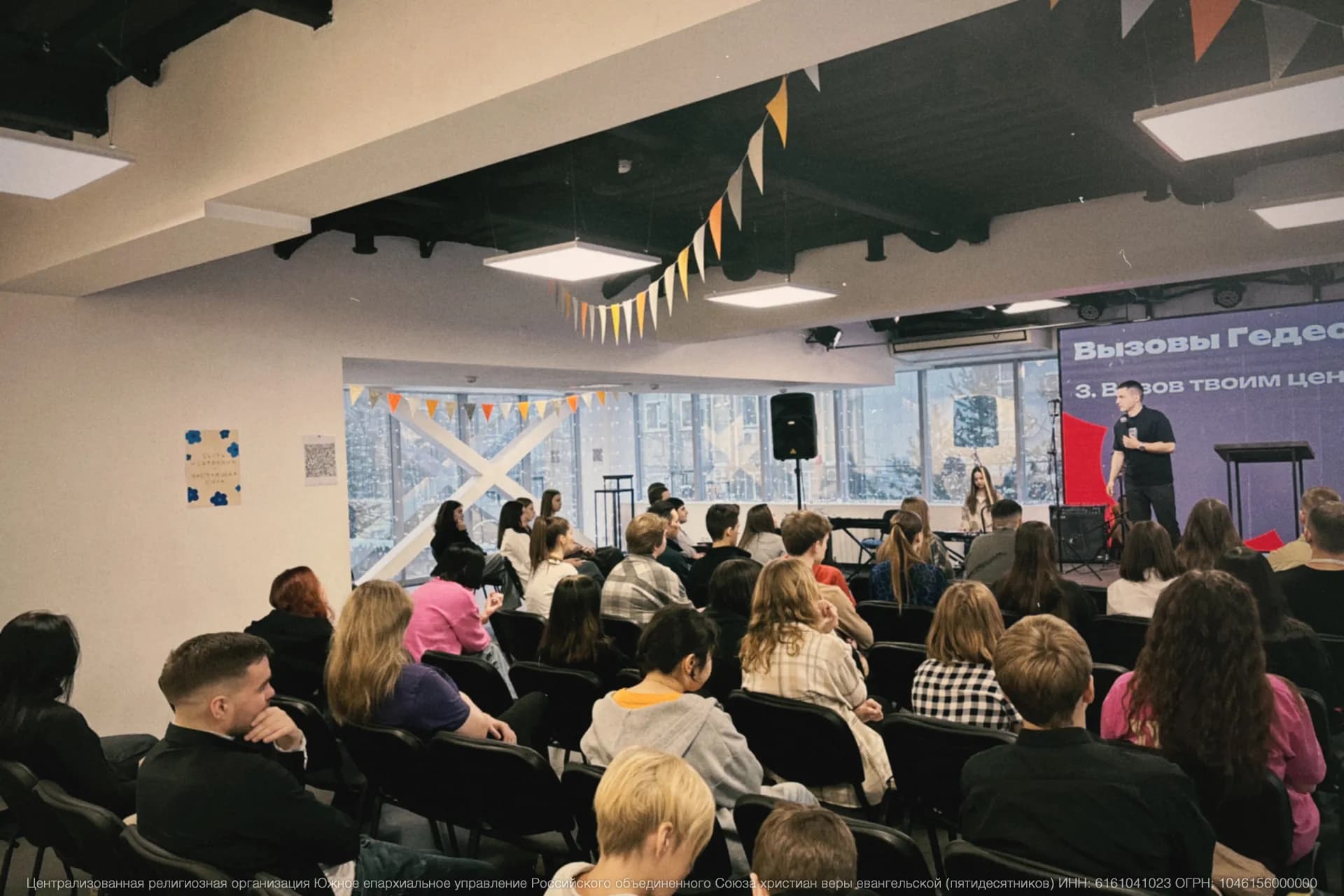 Первый день начался с вечернего служения, за которым последовала уютная чилл-зона, где участники смогли расслабиться и лучше узнать друг друга.