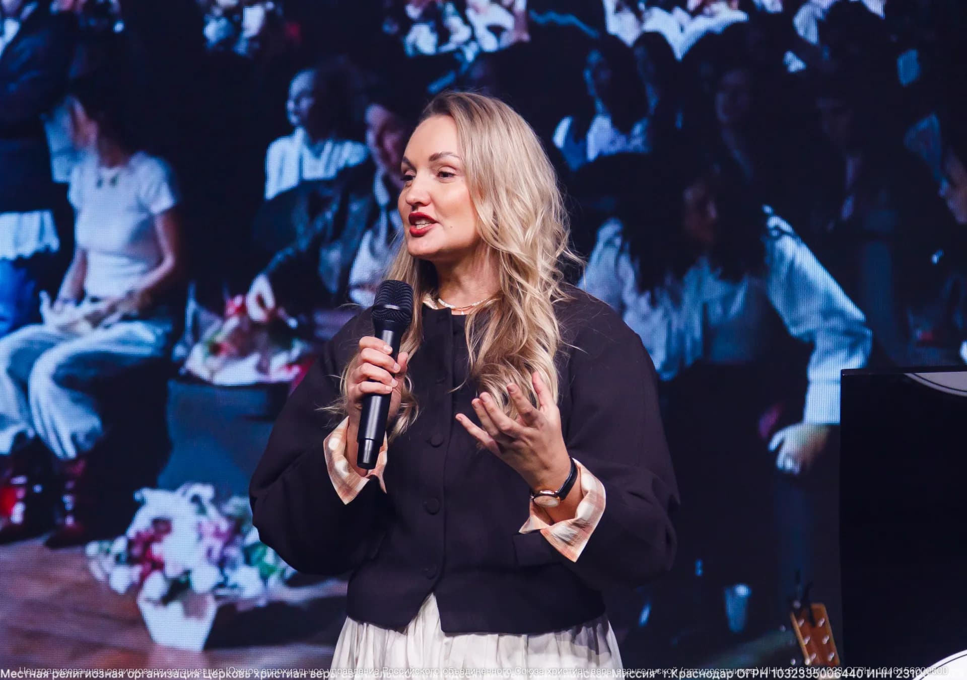 Олеся Накул, супруга пастора церкви «Вифания» в Краснодаре и руководитель служения прославления, поделилась словом о силе хвалы. Она отметила, что истинная хвала начинается не с человека и не с обстоятельств, а с познания того, Кто есть Бог, и что путь, пройденный вместе с Ним, всегда наполнен Его действием.