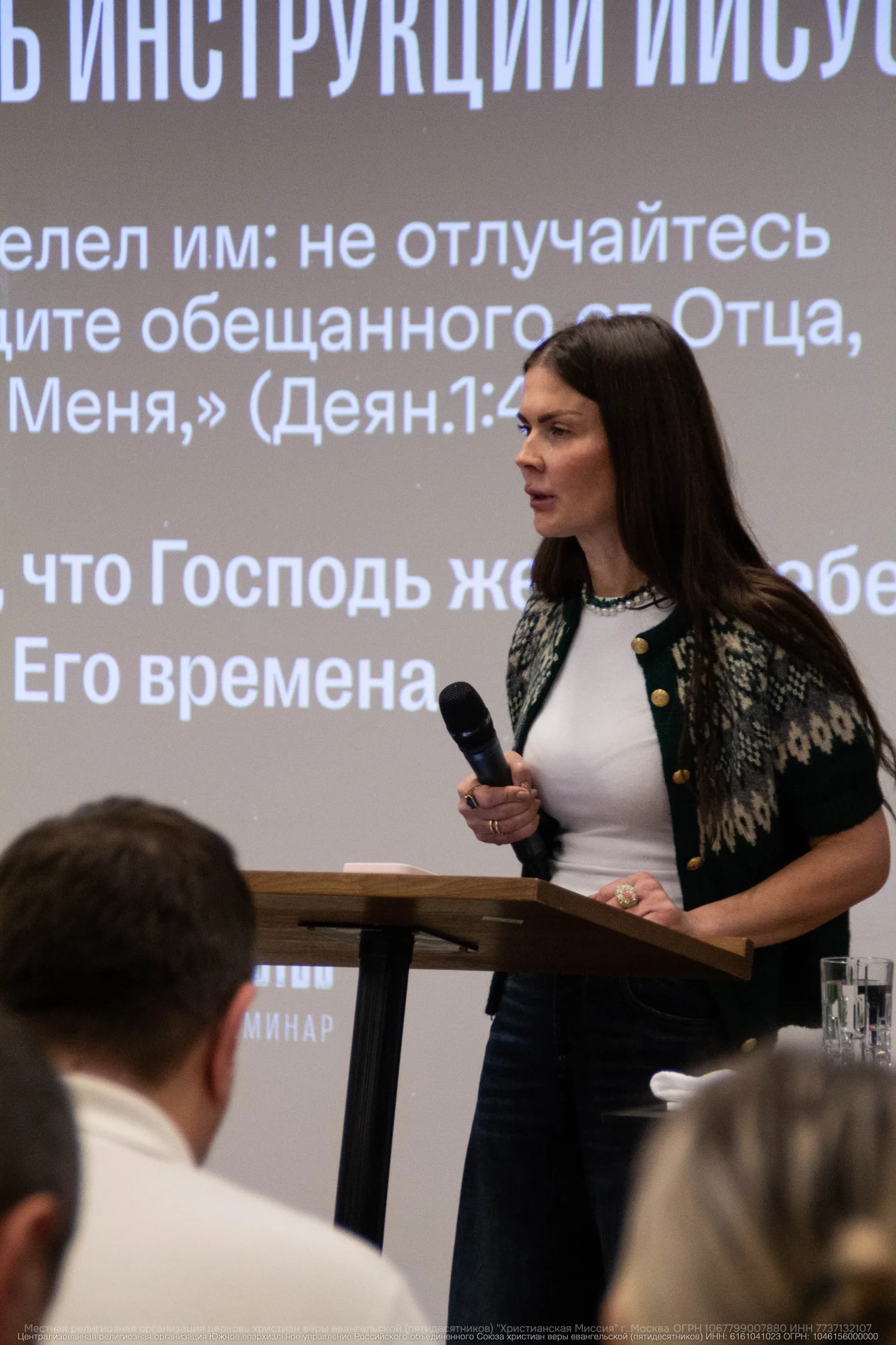 Пастор Нина Текучева обратилась к теме действия Духа Святого в жизни верующего. Она говорила о необходимости «построить горницу» — создать пространство для личной встречи с Богом, научиться слышать наставления Христа, искать единства и не пытаться проходить путь веры в одиночку.